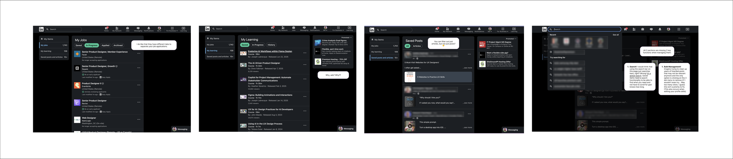 Redesigned how users access and act on their saved content on LinkedIn (web), making it easier to navigate, prioritize, and take strategic action on saved posts.